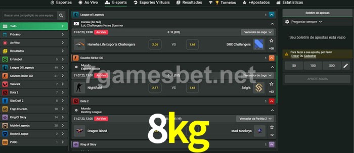 A aposta 8kg oferece aos jogadores a experiência mais conveniente de apostas em eSports!